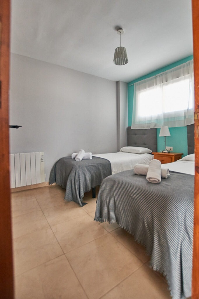 3 bedroom apartment. The Acapulco has a private parking, a large communal pool and garden. Very nice and big place for children to play. It is also located a few meters from the beach.
